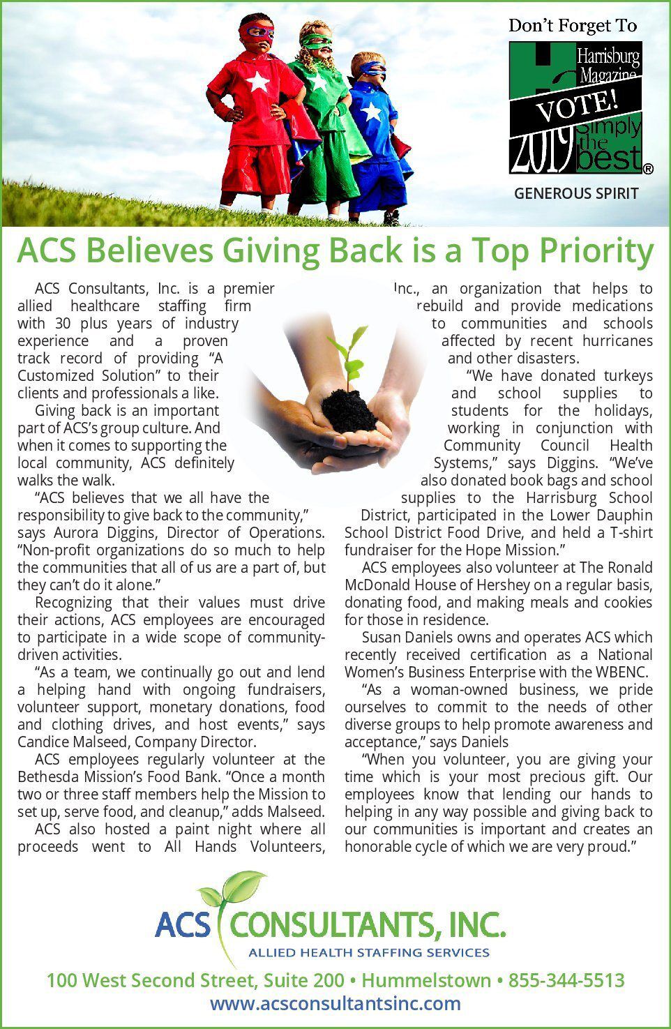 ACS is in the "people business." Our core purpose is to provide clients with highly-qualified therapists, nurses, psychologists, special education teachers and assistants coupled with first-rate management, prompt service and industry knowledge to improve the well-being of students and patients. ACS is devoted to our Independent contractors to make them the most effective nurses, therapists and teachers possible.